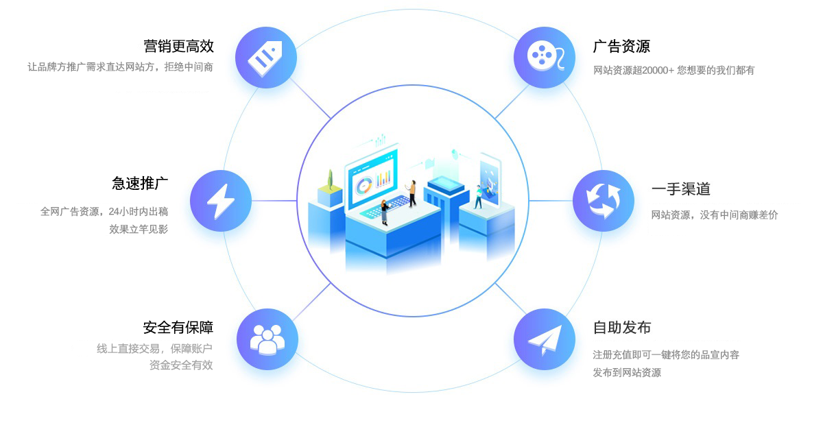 優質廣告資源,最快5 分鐘內出稿。讓品牌宣傳更高效